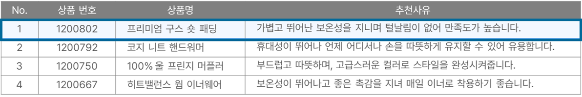 상품 추천 이유는 물론, 기획전 의도를 파악한 AI 상품 추천