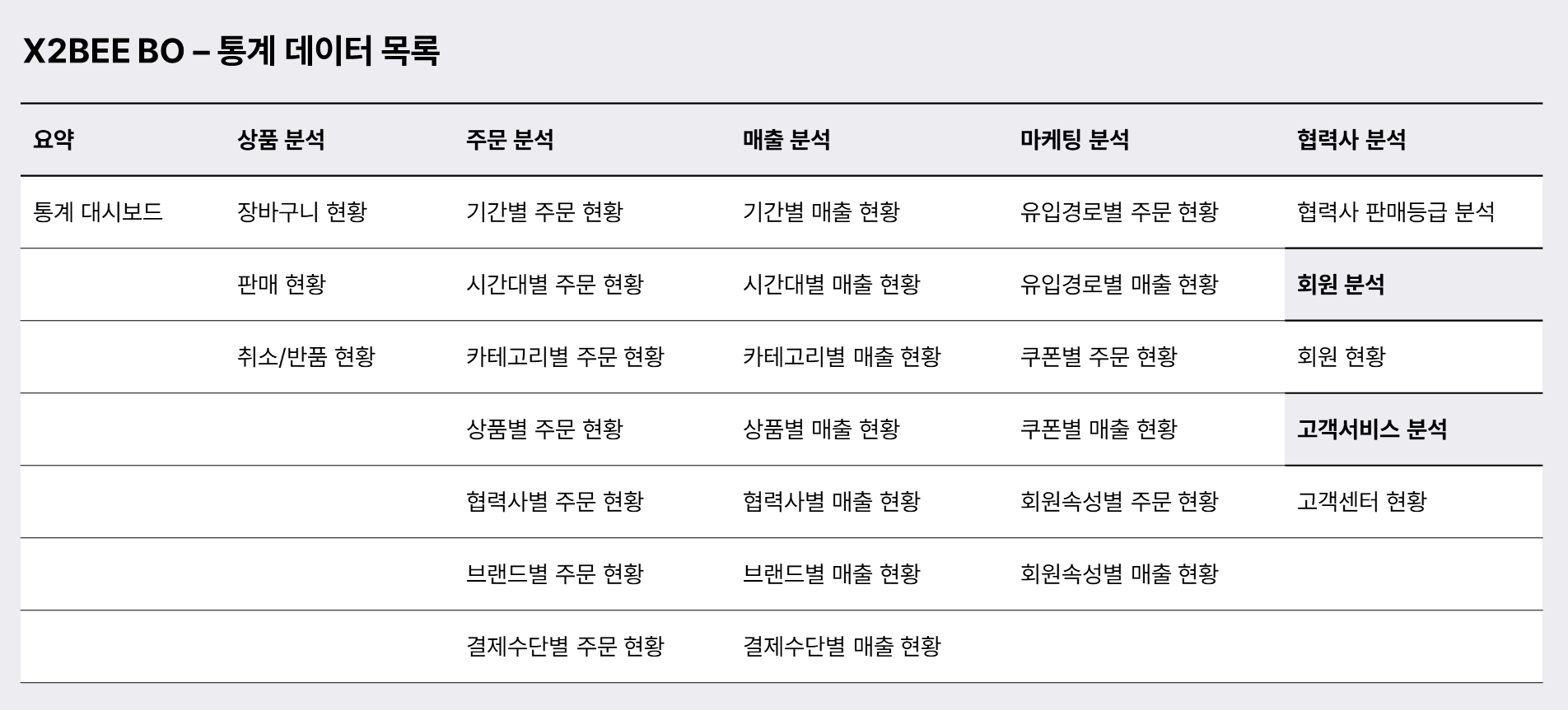 X2BEE는 AI로 완성하는 맞춤형 이커머스 D2C 솔루션으로, X2BEE로 구축된 이커머스의 27가지 분석 통계 데이터를 제공하고 있어요. 특히 상품과 주문 그리고 매출의 상세 분석 데이터값을 제공하여 비즈니스 ROI 증가에 직접적인 원인을 분석할 수 있죠.
