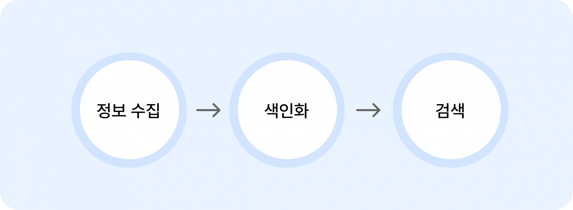 검색 엔진은 크게 다음 세 단계의 과정을 거쳐 사용자에게 검색 결과를 제공합니다.
