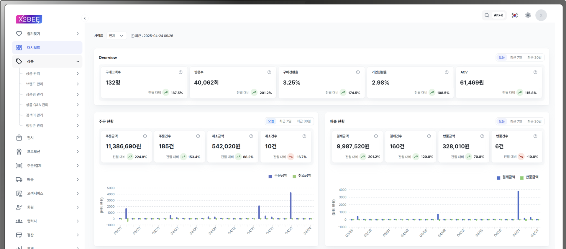 X2BEE는 API-first 구조에 따라 설계되었습니다. 모든 기능이 API로 노출되어 있어, 기업 내부에서 사용한 ERP나 물류 시스템, 외부 마케팅 툴과의 안정적이고 유연한 연동을 지원합니다.